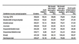 Sanayinin iki sektörünün bir önceki aya göre değişimleri; madencilik ve taşocakçılığı sektöründe %10,52 artış, imalat sanayi sektöründe ise %10,14 artış olarak gerçekleşti.