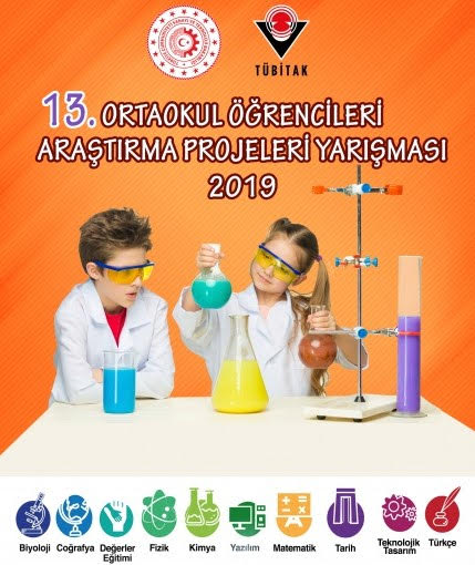 TÜBİTAK Bilim İnsanı Destek Programları Başkanlığı tarafından düzenlenen ve temel amacı gençleri düşünmeye, gözlem yapmaya, merak etmeye, merak ettikleri konuları araştırmaya teşvik ederek gelecekte karşılaşacakları problemlere yenilikçi ve özgün çözümler üretebilmelerine katkıda bulunmak olan “TÜBİTAK 13. Ortaokul Öğrencileri Araştırma Projeleri Yarışması”nda öğrenciler biyoloji, coğrafya, fizik, kimya, matematik, değerler eğitimi, tarih, Türkçe, yazılım ve teknolojik tasarım alanlarında hazırladıkları özgün projeler ile yarıştılar.