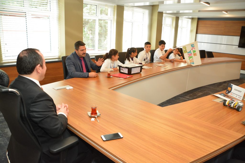 Okul Müdürü İhsan Erkek ve Bilişim Teknolojileri Öğretmeni Selçuk AKDENİZ nezaretinde İl Millî Eğitim Müdürü Yakup Yıldız’ı ziyaret eden Karesi Yakupköy Ortaokulu Robotik Kodlama Takımı: “Uçan Yakup” öğrencileri, 11 madalya ve bir plaket ile döndükleri FIRST® LEGO® League (FLL) turnuvası hakkında bilgiler verdiler.