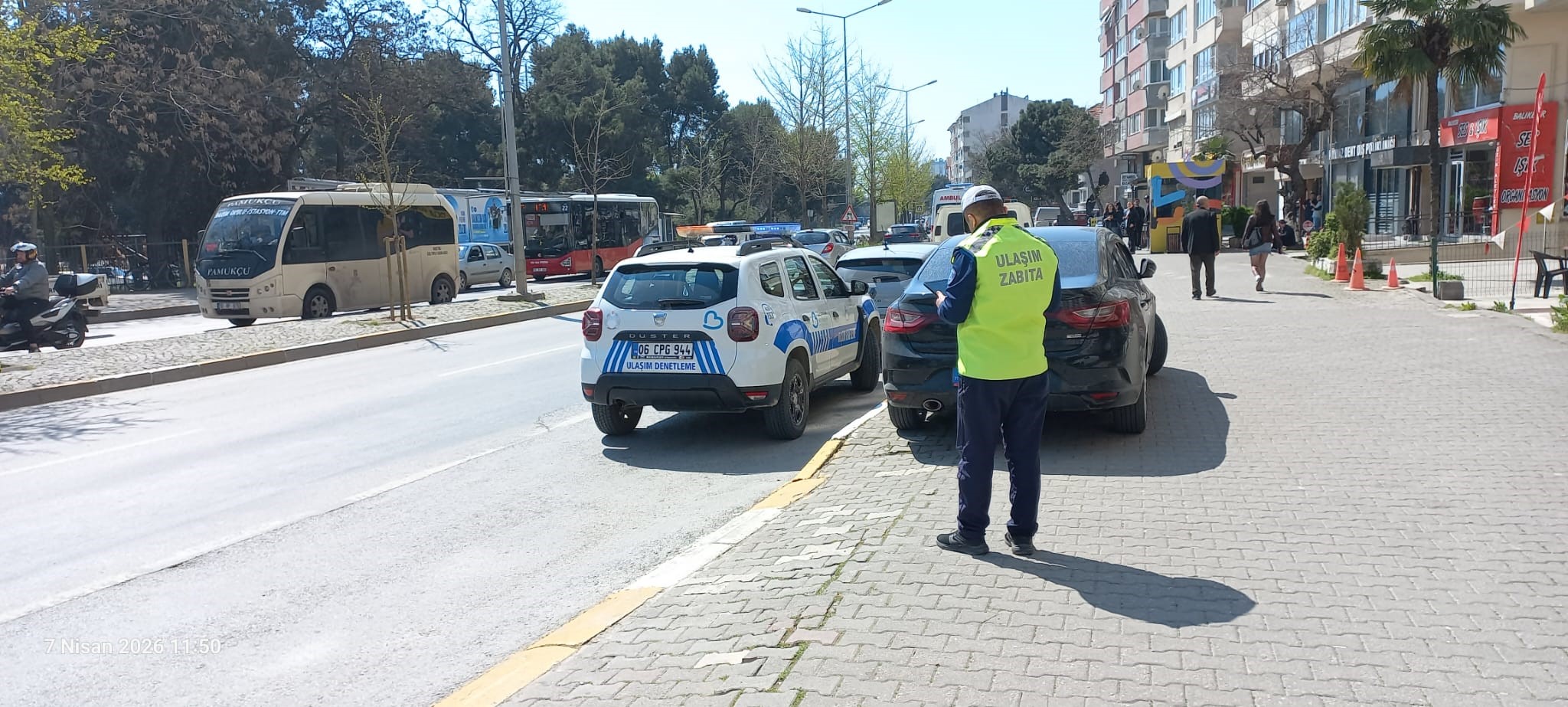 İçişleri Bakanlığının belirlediği Belediye Zabıta Yönetmeliği ve Belediyemizin belirlediği Zabıta Emir ve Yasakları Uygulama Yönetmeliğince kaldırım işgali, toplu taşıma durak/durak ceplerine ve sınırlı süreli yük indi/bindi ceplerine park eden araçlara tespit tutanağı düzenleme yetkisi Zabıta Memuruna verilmiştir. Ancak öncesinde kimlik/ruhsat bilgilerine erişiminde K.V.K kapsamında Emniyet Müdürlüğü personelinin bilgi paylaşımında bulunmadığı bu bağlamda diğer büyükşehir belediyeleri ile gerçekleştiğimiz görüşmeler neticesinde E-Belediye üzerinden 03/03/2026 tarihinden itibaren gerekli bilgilere erişim sağlanmaya başlamış olup; Kabahatlar kanununun 32. Maddesi gereğince Belediyemiz Encümenince 3705 TL idari para cezası uygulanmaktadır.