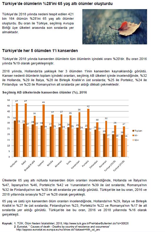 • TÜRKİYE’DE ÖLÜMLERİN %28’İNİ 65 YAŞ ALTI ÖLÜMLER OLUŞTURDU