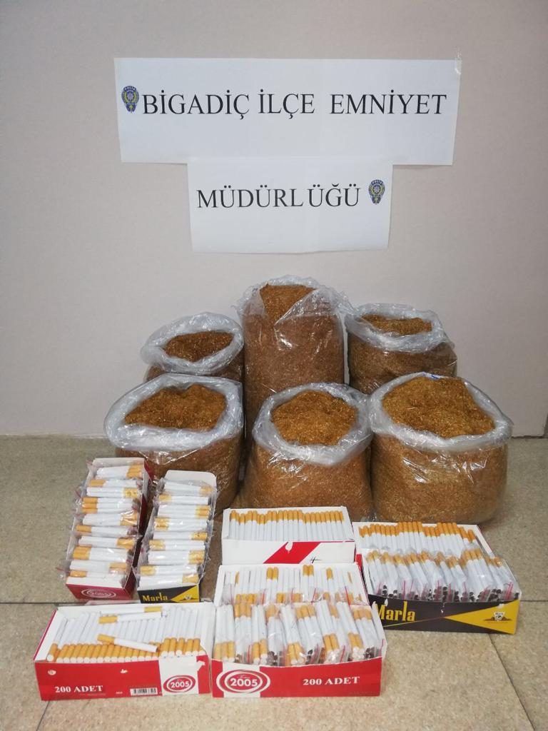 Alo 136 kaçakçılık ihbar hattını arayan bir şahsın 10….plaka sayılı araç ile İ.D. adlı şüpheli şahsın paketlenmiş kıyılmış tütün sattığını bildirmesi üzerine Bigadiç ilçesindeki adresi ve araçta yapılan aramada 20.505 kg kıyılmış tütün ve1577 adet makaron içine basılmış satışa hazır sigara görülmesi üzerine İ.D. adlı şahıs Bigadiç İlçe Emniyet Müdürlüğüne götürülerek soruşturmaya başlanmıştır. Ayrıca, ele geçirilen açık kıyılmış tütün ile ilgili olarak şüpheli hakkında 4733 sayılı kanun uyarınca 522 TL idari para cezası uygulanmıştır.