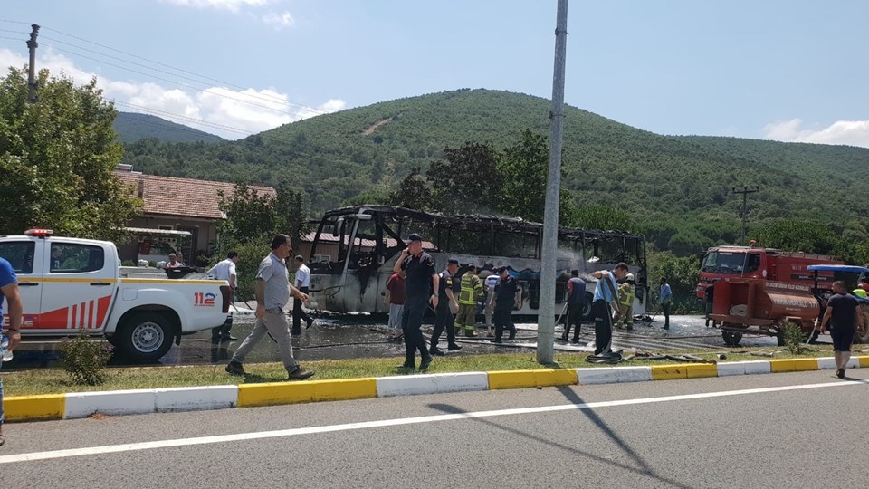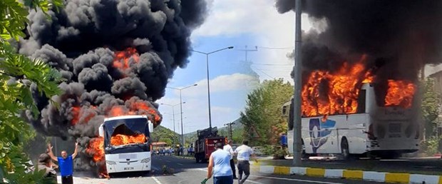 Yangın itfaiyenin müdahalesiyle söndürüldü ancak otobüsün tamamı yandı.