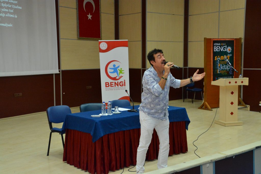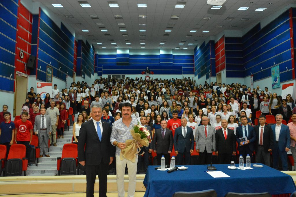 İl merkezindeki 26 farklı okuldan 500 öğrencinin katılımlarıyla gerçekleştirilen etkinlikte Ahmet Selçuk İlkan, okuduğu şiirleriyle adeta kulakların pasını sildi. Hayatının neredeyse her anında şiir yazan ve beste yapan Ahmet Selçuk İlkan; Emel Sayın’dan Zeki Müren’e, Müslüm Gürses’ten Ferdi Tayfur’a kadar akla gelebilecek tüm sanatçılara şarkılar verdiğini ve o şarkıların hepsinin hayatından bir kesit olduğunu açıkladı.